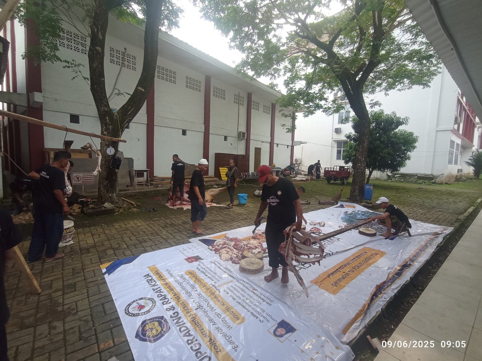 KARAWANG | TRIKUPDATE.CLIK | Dewan Kemakmuran Masjid (DKM) Al-Khoir Universitas Singaperbangsa Karawang (Unsika) kembali menggelar penyembelihan hewan kurban pada momen Iduladha 1446 H/2025 M. Kegiatan ini berlangsung pada Senin, 9 Juni 2025, di halaman Masjid Al-Khoir Unsika dengan tema “Unsika Berkurban.”