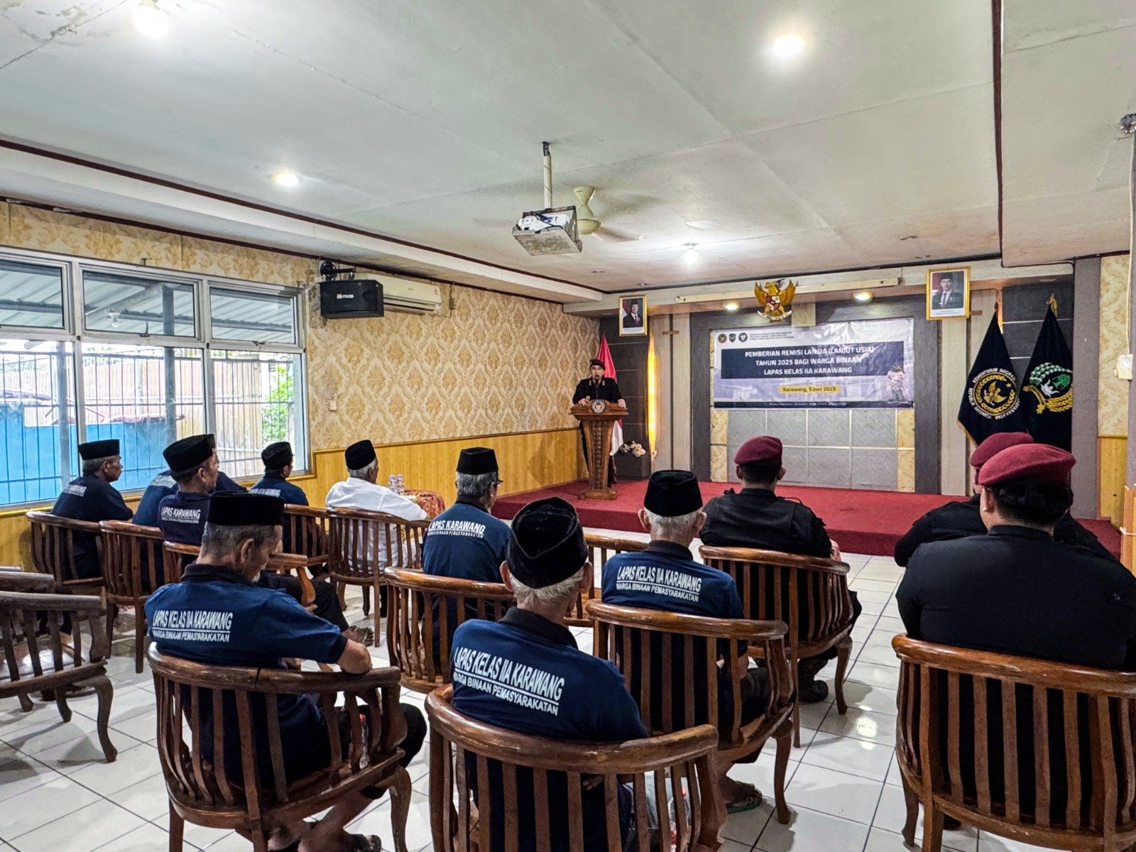 Dalam sambutannya, Kalapas Christo Toar memberikan motivasi kepada S dan warga binaan lanjut usia lainnya yang hadir di Aula Sahardjo, Lapas Karawang.