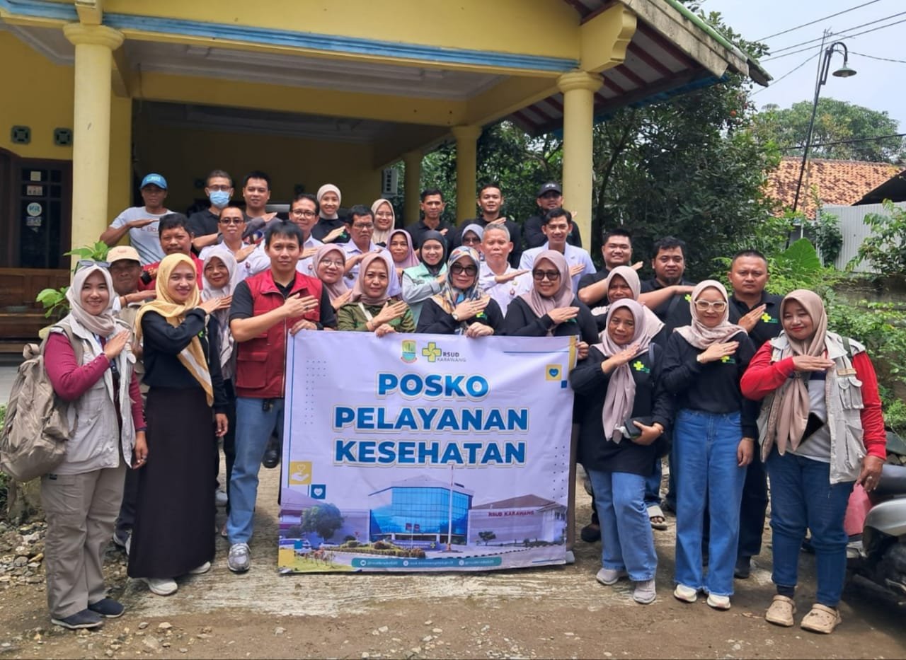 KARAWANG | TRIKUPDATE.CLICK | Rumah Sakit Umum Daerah (RSUD) Kabupaten Karawang mengadakan layanan pemeriksaan dan pengobatan gratis bagi masyarakat terdampak banjir di Kampung Leuwiasem, Desa Parungsari, Kecamatan Telukjambe Barat.